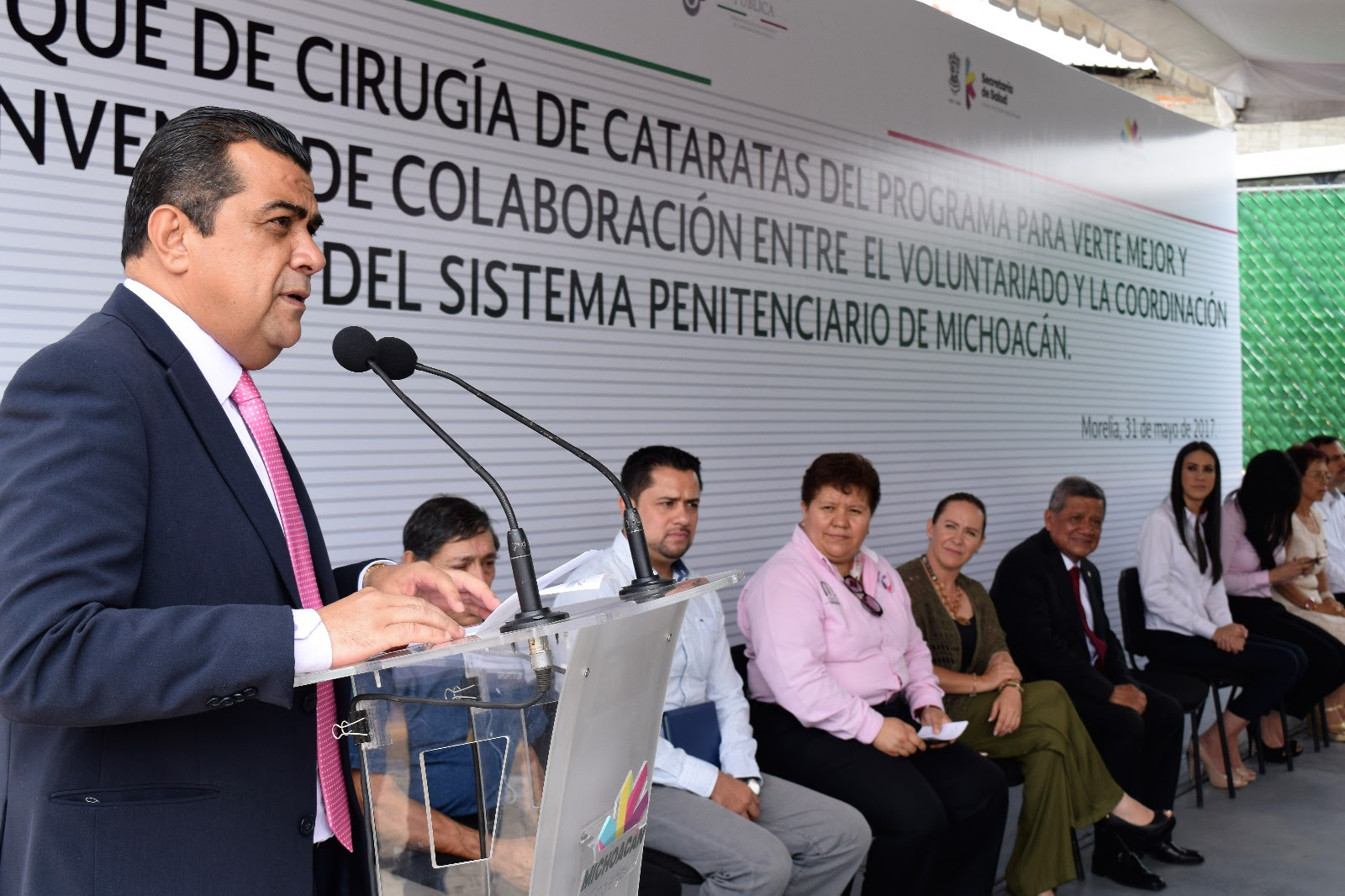 Morelia, Michoacán, a 31 de mayo de 2017.- Con el propósito de mejorar la salud de las y los michoacanos que no cuentan con los recursos económicos para solventar una operación quirúrgica, la Secretaría de Salud de Michoacán (SSM) en coordinación con los gobiernos federal y municipal, a través de su titular, Elías Ibarra Torres arrancaron este miércoles de manera oficial la Jornada de Cirugía de Cataratas 2017 “Para Verte Mejor”.
