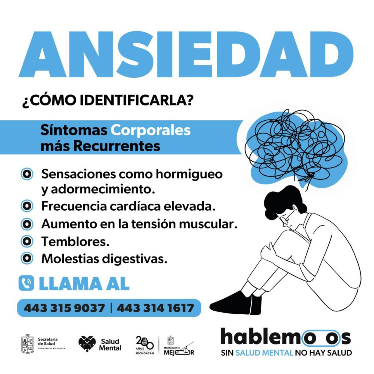 Cuando se convierte en trastorno puede presentar taquicardia, mareos, adormecimiento de manos, sudoración, cambios de temperatura corporal y problemas para dormir, por lo que la SSM te invita a llamar a la línea Hablemoos, mediante los teléfonos 443-314-1617 y 443-315-9037, donde podrás recibir ayuda de manera permanente con psicólogos especialistas.