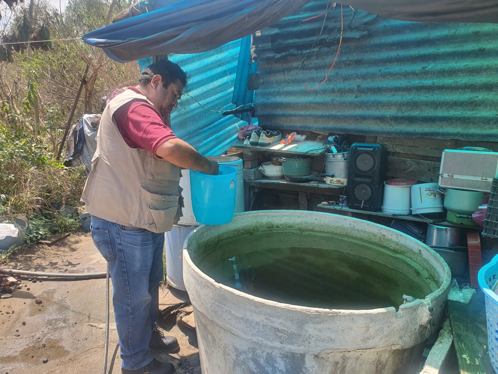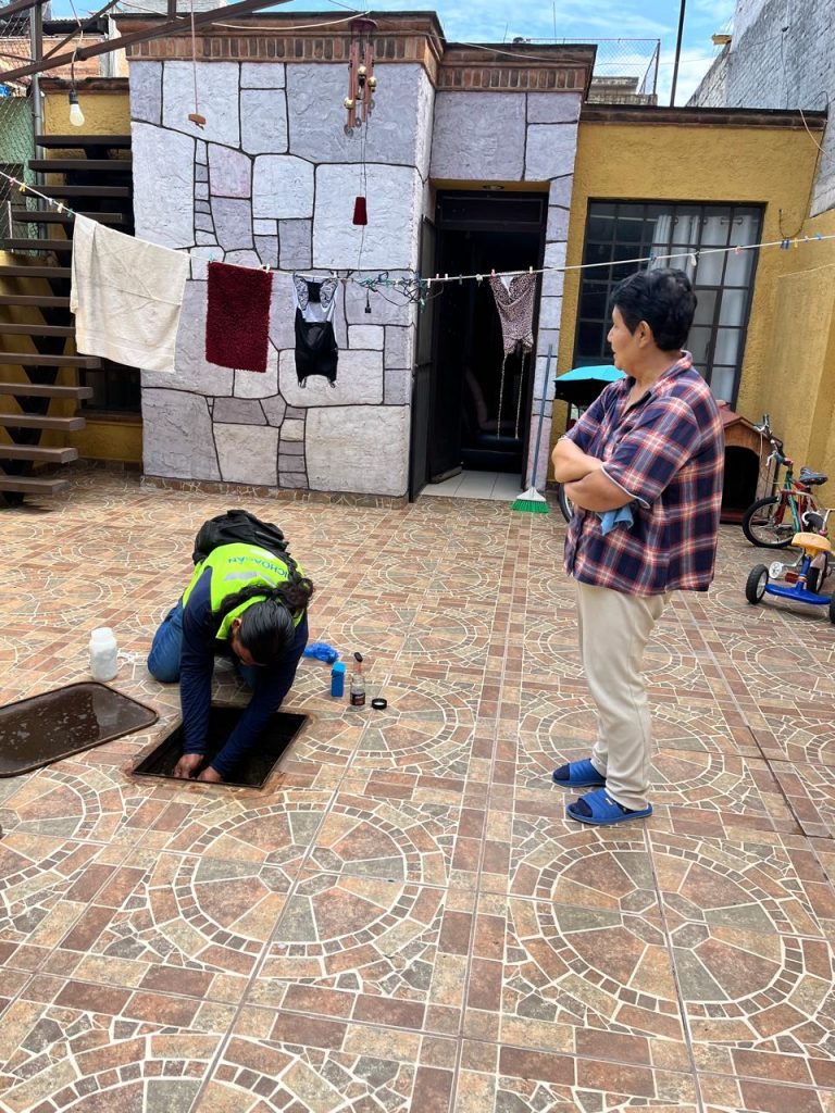 Como parte del diagnóstico se llevó a cabo la cloración de aljibes, pilas y tinacos, se entregaron frascos de plata coloidal para la desinfección de frutas y verduras, y se orientó a las familias afectadas para que lleven a cabo las recomendaciones para el manejo higiénico de los alimentos y la limpieza y desinfección de sus hogares y calles aledañas.