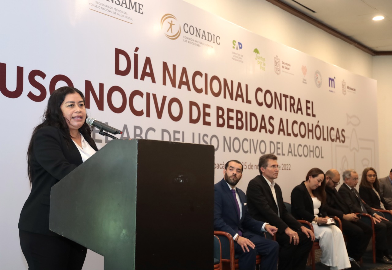 En representación del secretario de Salud Elías Ibarra Torres, la directora de los Servicios de Salud de Michoacán, Belinda Iturbide Díaz, recordó que la SSM realiza acciones permanentes para prevenir y tratar a la población con adicciones, bajo la nueva política de atención a la salud mental, implementada por el gobernador Alfredo Ramírez Bedolla.