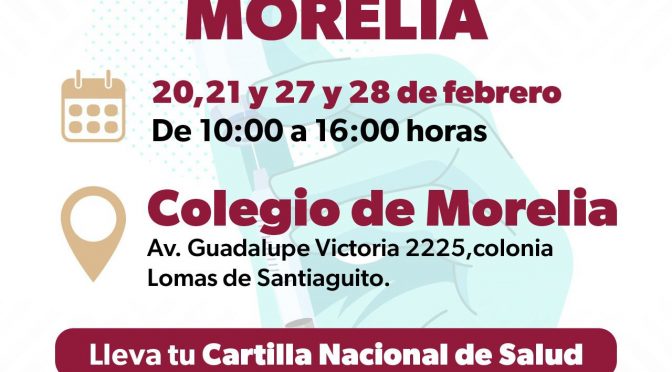 • Los días 20, 21, 27 y 28 de febrero, en un horario de 10:00 a 16:00 horas Morelia, Michoacán, 17 de febrero de 2026.- Para blindar la salud de la población capitalina contra el sarampión, la Secretaría de Salud de Michoacán (SSM) habilitará un mega centro de vacunación en el Colegio de Morelia, ubicado […]