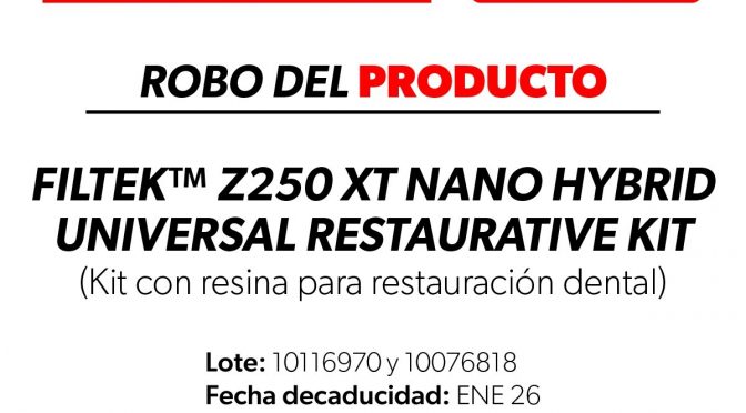 • Los lotes 10116970 y 10076818 estaban destinados para su destrucción Morelia, Michoacán, 29 de enero del 2026.- La Comisión Federal para la Protección contra Riesgos Sanitarios (Cofepris), a través de la Secretaría de Salud de Michoacán (SSM), informa a la población sobre el robo del producto FILTEK™️ Z250 XT NANO HYBRID UNIVERSAL RESTORATIVE KIT, […]