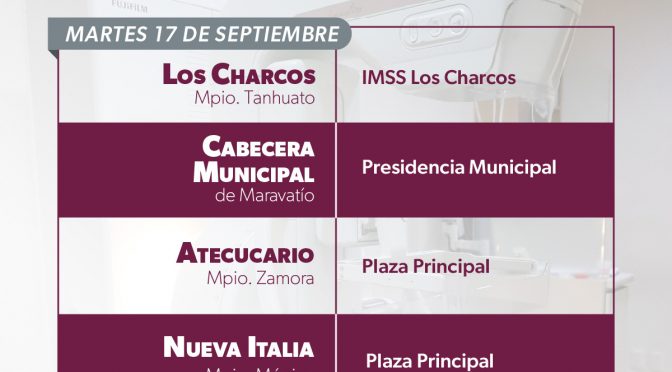Del 17 al 20 de septiembre, para detectar oportunamente casos de cáncer de mama Morelia, Michoacán, 13 de septiembre de 2024.- Del 17 al 20 de septiembre, la Secretaría de Salud de Michoacán (SSM) desplegará las unidades móviles de mastografía a los municipios de Tanhuato, Maravatío, Zamora, Ecuandureo, Múgica, y La Huacana, para detectar oportunamnete […]
