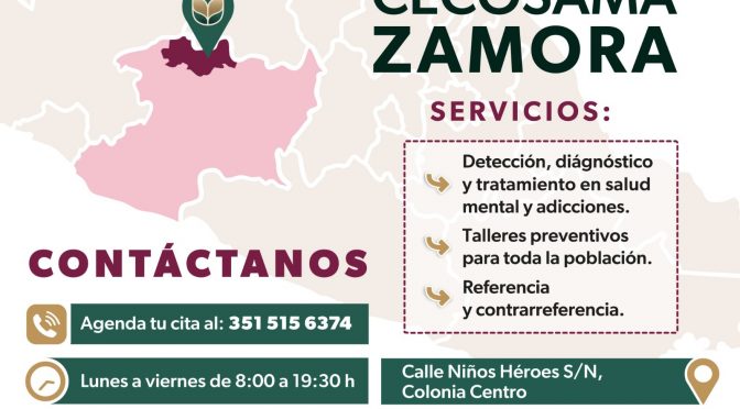 Ubicados en Morelia, Uruapan, Zamora, Zitácuaro y Lázaro Cárdenas Morelia, Michoacán, 5 de septiembre de 2024.- El Gobierno de Michoacán ofrece atención psicológica y psiquiátrica gratuita a través de cinco Centros Comunitarios de Salud Mental y Adicciones (Cecosamas), ubicados en Morelia, Zitácuaro, Lázaro Cárdenas, Uruapan y Zamora. En lo que va del año, estas unidades […]