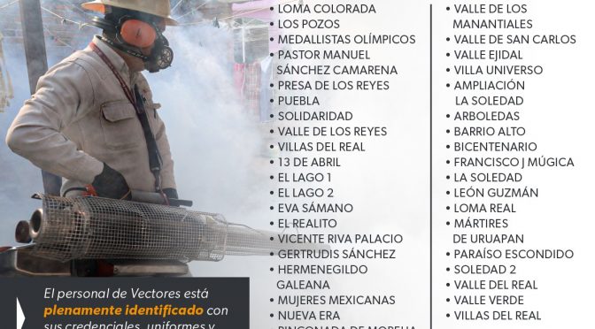 Para proteger a más 400 mil habitantes; también contra zika y chikungunya Morelia, Michoacán, 19 de agosto de 2024.- Del 19 al 22 de agosto, la Secretaría de Salud de Michoacán fumigará 110 colonias de Morelia contra el dengue, zika y chikungunya, para proteger a más de 400 mil habitantes Este operativo es parte de […]