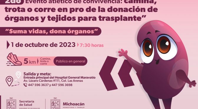A realizarse el domingo 1 de octubre en Maravatío Morelia, Michoacán, 7 de septiembre de 2023.- La Secretaría de Salud de Michoacán (SSM) informa a la población que continúan abiertas las inscripciones para participar en la segunda edición del evento atlético de convivencia Suma vidas, dona órganos, que se realizará el domingo 1 de octubre […]
