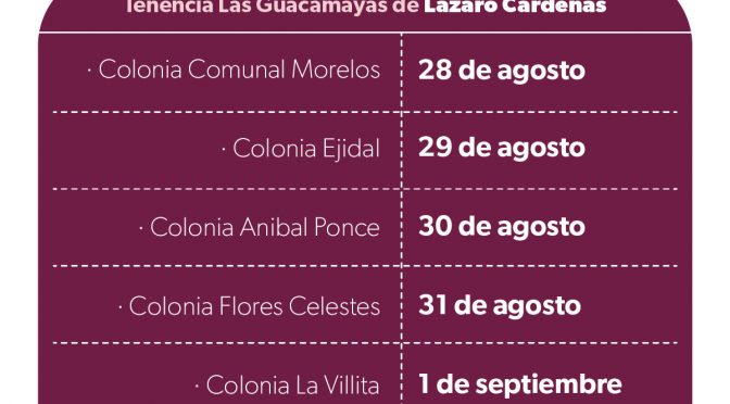 Del 28 de agosto al 1 de septiembre, en cinco colonias de la tenencia de Las Guacamayas Morelia, Michoacán, 25 de agosto de 2023.- La Secretaría de Salud de Michoacán (SSM) continúa con la campaña de detección oportuna del cáncer de mama en el municipio Lázaro Cárdenas que, del 28 agosto al 1 de septiembre, […]