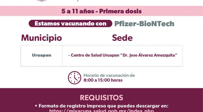 Se aplicarán primeras dosis del 26 l 29 de junio. Morelia, Michoacán, 26 de junio de 2023.- La Secretaría de Salud de Michoacán (SSM) amplió la campaña de vacunación contra el COVID-19 en los municipios de Morelia y Uruapan para que todas las niñas y niños de cinco a 11 años cumplidos puedan vacunarse. Se […]