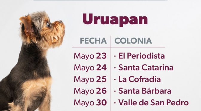 En 14 colonias, del 23 de mayo al 14 de junio. Uruapan, Michoacán, 24 de mayo de 2023.- La Secretaría de Salud de Michoacán refuerza en colonias de Uruapan las acciones de vacunación antirrábica canina y felina, para lo que resta del mes de mayo y hasta mediados de junio. La vacuna se aplica de […]