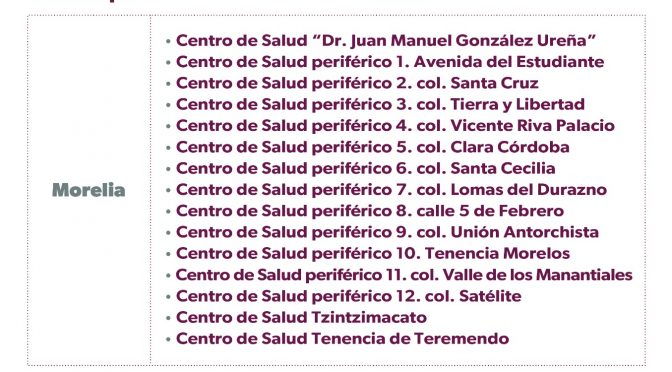 Para personas rezagadas mayores de 18 años. Morelia, Michoacán, 27 de marzo de 2023.- En atención a la población mayor de 18 años que no cuenta con ninguna dosis de la vacuna contra el COVID-19, la Secretaría de Salud de Michoacán (SSM) mantiene habilitado un módulo de inmunización en la plaza del Carmen, en el […]