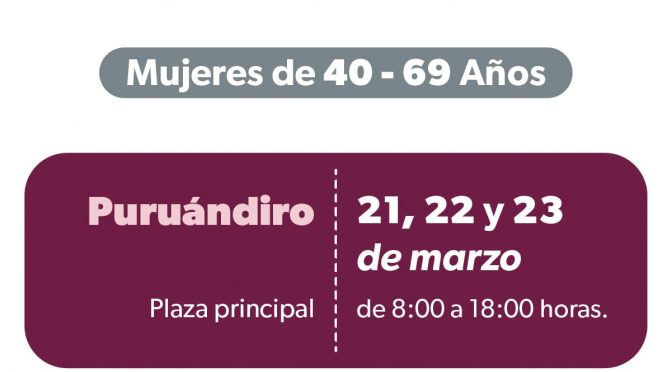 Del 21 al 23 de marzo, en la plaza principal. Morelia, Michoacán, 17 de marzo de 2023.- Con el propósito de brindar diagnósticos oportunos de cáncer de mama a mujeres de 40 a 69 años de edad, la Secretaría de Salud de Michoacán (SSM) realizará una jornada de mastografías gratuitas del 21 al 23 de […]