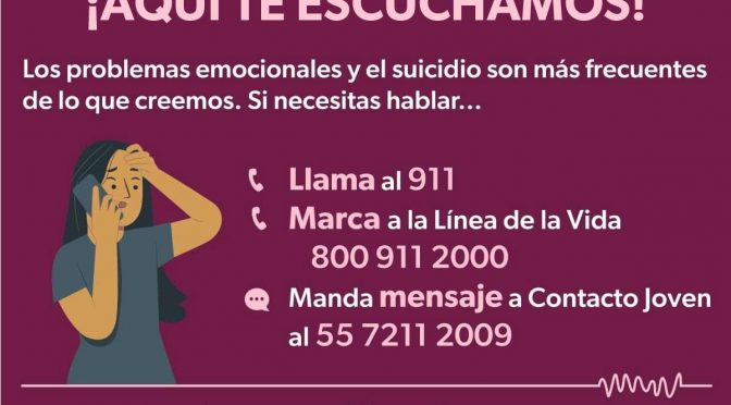 Morelia, Michoacán, 8 de diciembre del 2022.- La atención temprana de la depresión puede prevenir intentos de suicidio o su consumación, es por ello que la Secretaría de Salud de Michoacán (SSM), a través de la Dirección de Salud Mental, invita a la población a solicitar ayuda profesional a la Línea de la Vida, al […]