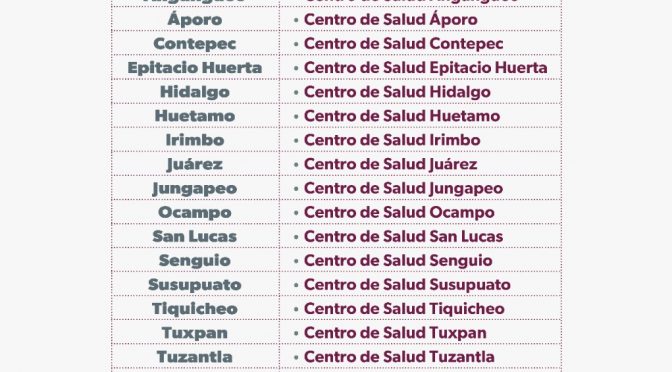 Morelia, Michoacán, 23 de noviembre del 2022.- Del 23 al 28 de noviembre, la Secretaría de Salud de Michoacán (SSM) desplegará unidades móviles de mastografía a los municipios de Buenavista, Apatzingán y Múgica. El 23 y 24 de noviembre, los estudios se realizarán en la explanada de la presidencia municipal de Buenavista desde las 08:00 […]