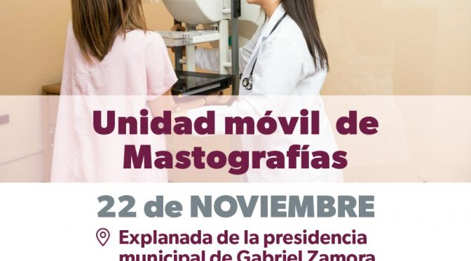 Morelia, Michoacán, 17 noviembre del 2022.- Como parte de la campaña permanente de prevención y detección oportuna del cáncer de mama, la Secretaría de Salud de Michoacán (SSM) realizará, del 18 al 19 de noviembre, mastografías gratuitas a mujeres de entre 40 a 69 años en el municipio de Tancítaro. Las interesadas en este estudio […]