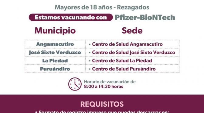El objetivo es completar esquemas e inmunizar a quienes nunca se han vacunado para terminar con el rezago Primeras y segundas dosis podrán ser aplicadas este mes Morelia, Michoacán, 14 de noviembre del 2022.- Todos los michoacanos, mayores de 18 años que aún no se han vacunado contra el COVID-19 podrán hacerlo con Pfizer BioNTech. […]