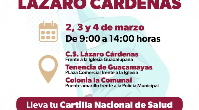• Del 2 al 4 de marzo en puntos estratégicos de alta afluencia Morelia, Michoacán, 2 de marzo de 2026.- Para reforzar la prevención del sarampión, la Secretaría de Salud de Michoacán (SSM) instalará del 2 al 4 de marzo módulos de vacunación en el municipio de Lázaro Cárdenas, donde atenderá a la población en […]