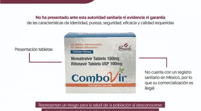 • Promete tratar el COVID-19 y no cuenta con registro sanitario en México Morelia, Michoacán, 30 de octubre de 2024.- La Secretaría de Salud de Michoacán (SSM), a través de la Comisión Estatal para la Protección contra Riesgos Sanitarios (Coepris), alerta a la población sobre la venta irregular del medicamento Combovir (nirmatrelvir 150 mg/ritonavir 100 […]