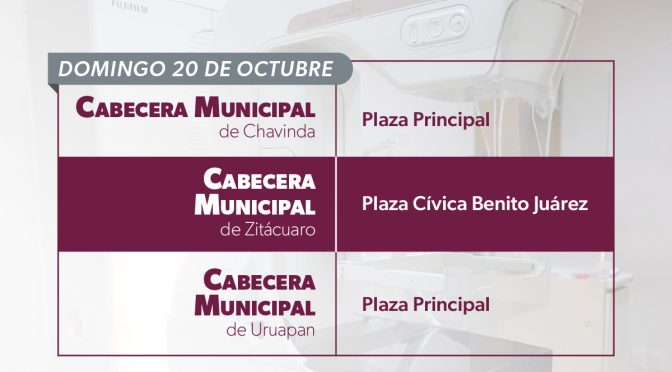 • Para detectar nuevos casos de cáncer de mama en Chavinda, Zitácuaro y Uruapan Morelia, Michoacán, 16 de octubre de 2024.- Este fin de semana, la Secretaría de Salud de Michoacán (SSM) ofrecerá mastografías gratuitas a mujeres de 40 a 69 años de edad de los municipios de Chavinda, Zitácuaro y Uruapan, como parte de […]