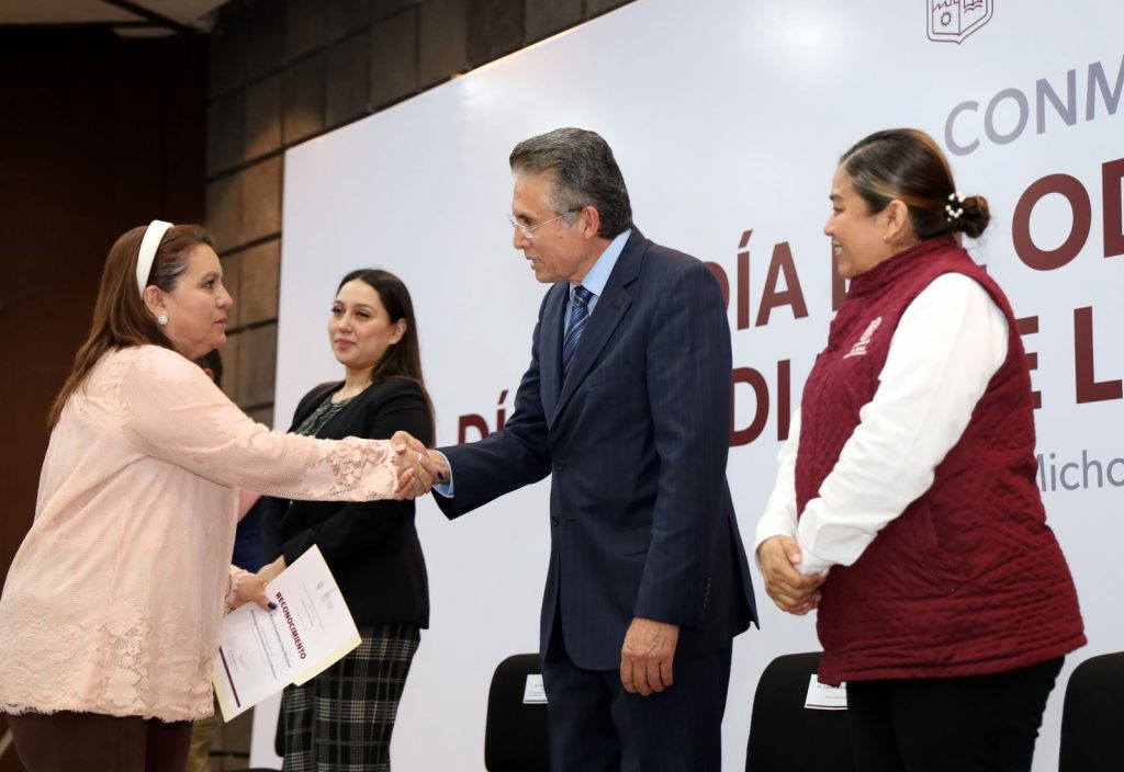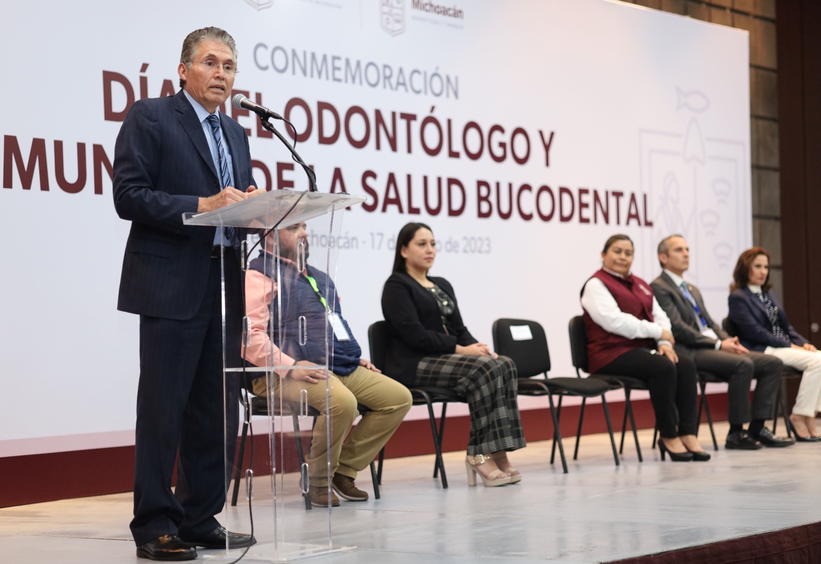 Morelia, Michoacán, 17 de marzo de 2023.- Con conferencias magistrales en temas de actualización que les permitan mejorar las técnicas de atención que aplican al paciente, la Secretaría de Salud de Michoacán (SSM) conmemoró el Día del Odontólogo y el Día Mundial de la Salud Bucodental con un evento donde fue reconocido el trabajo que desempeñan los profesionales en 153 centros y 23 hospitales de la entidad.
