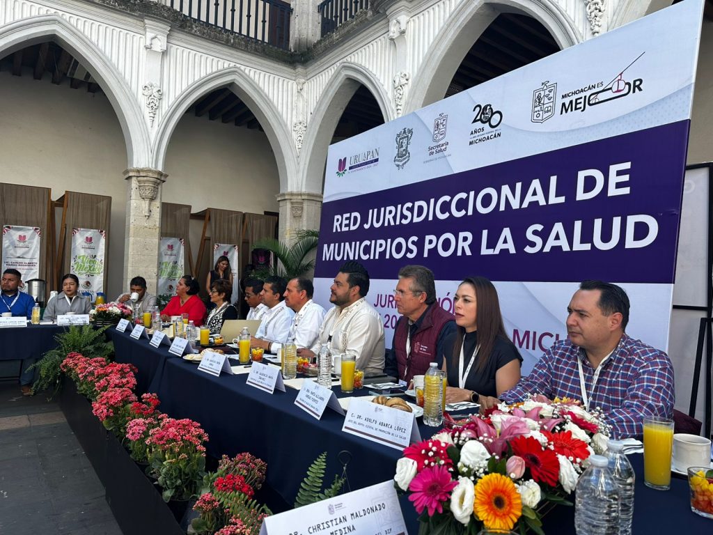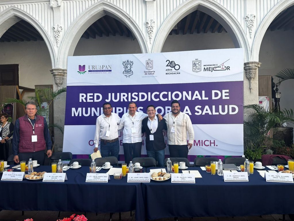 Uruapan, Michoacán, 24 de octubre de 2024.- En aras de impulsar y fortalecer la participación de las autoridades municipales en el desarrollo de acciones en favor del cuidado de la salud de la población, la Secretaría de Salud de Michoacán (SSM) conformó la Red Jurisdiccional de Municipios por la Salud de la región Uruapan.