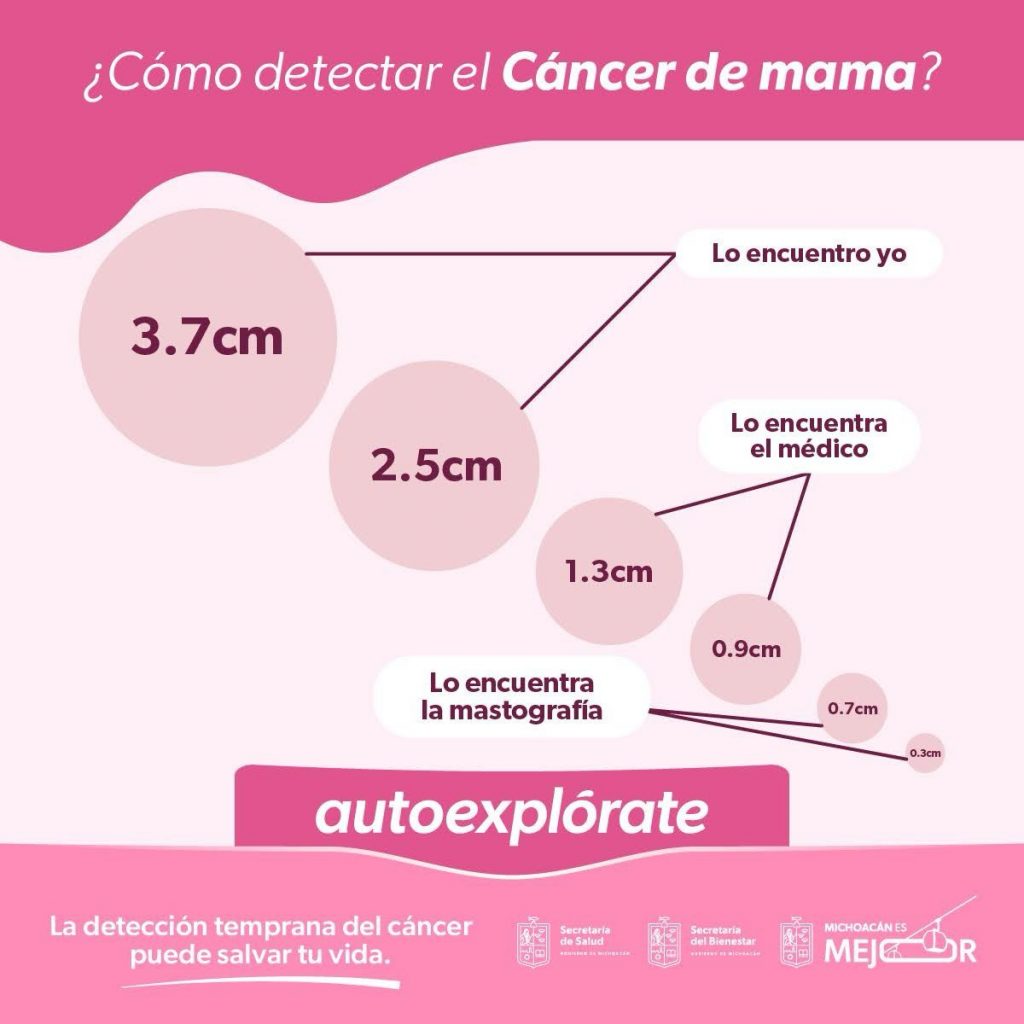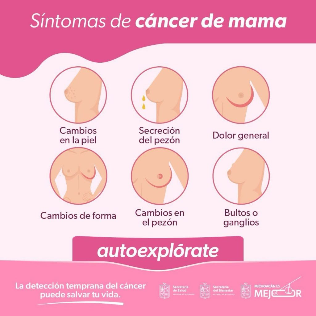 Morelia, Michoacán, 23 de octubre de 2024.- La Secretaría de Salud de Michoacán (SSM) recuerda a las mujeres que los síntomas del cáncer de mama incluyen la aparición de bultos en uno o ambos senos, cambios en su tamaño o forma y dolor que no desaparece.