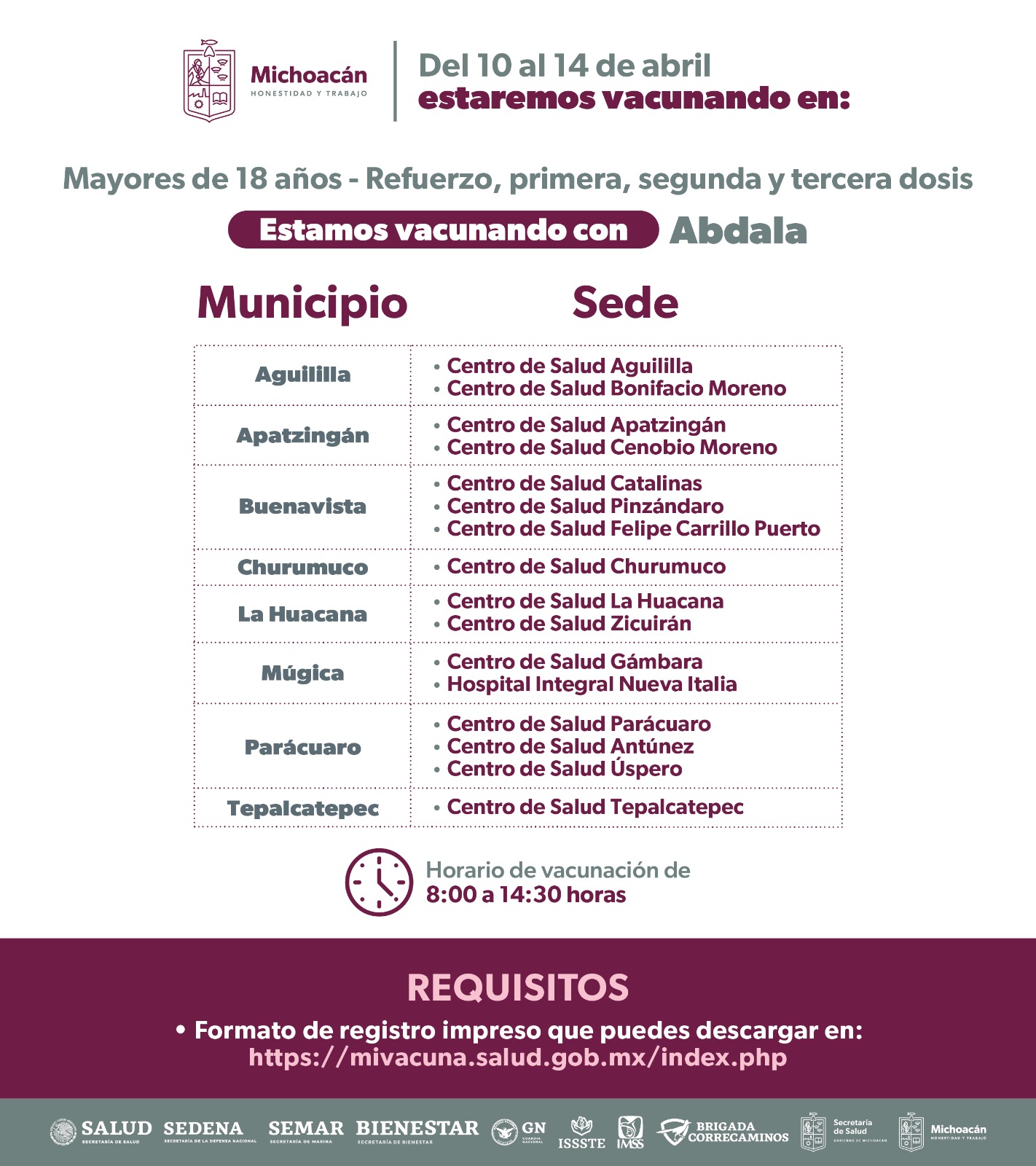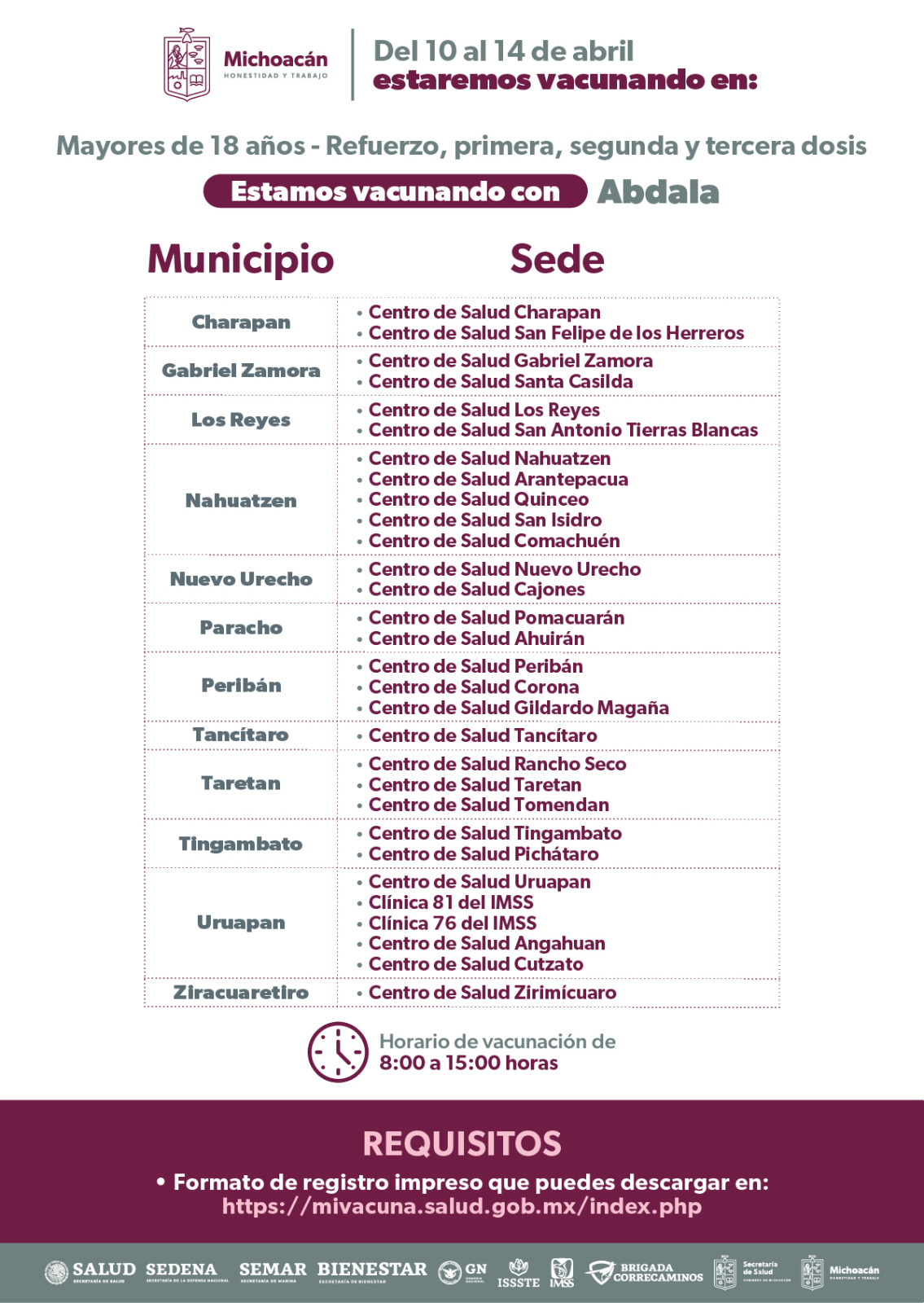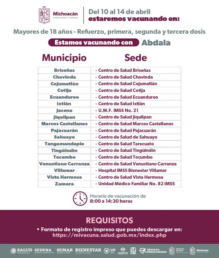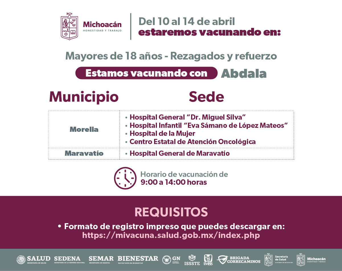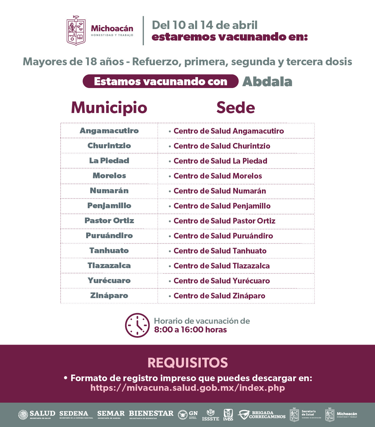 La vacunación es una medida crucial para combatir la propagación del COVID-19 en Michoacán y proteger la salud de la población. Por ello, la SSM hace un llamado a la ciudadanía a acudir a los centros de salud correspondientes y recibir la vacuna Abdala.