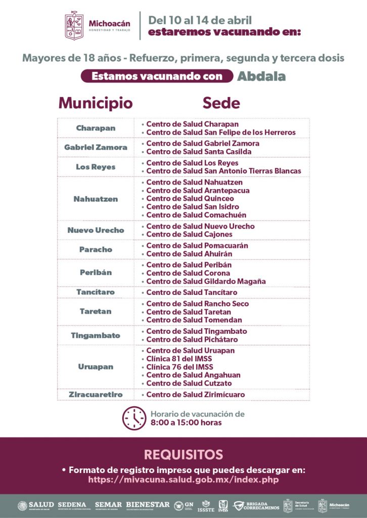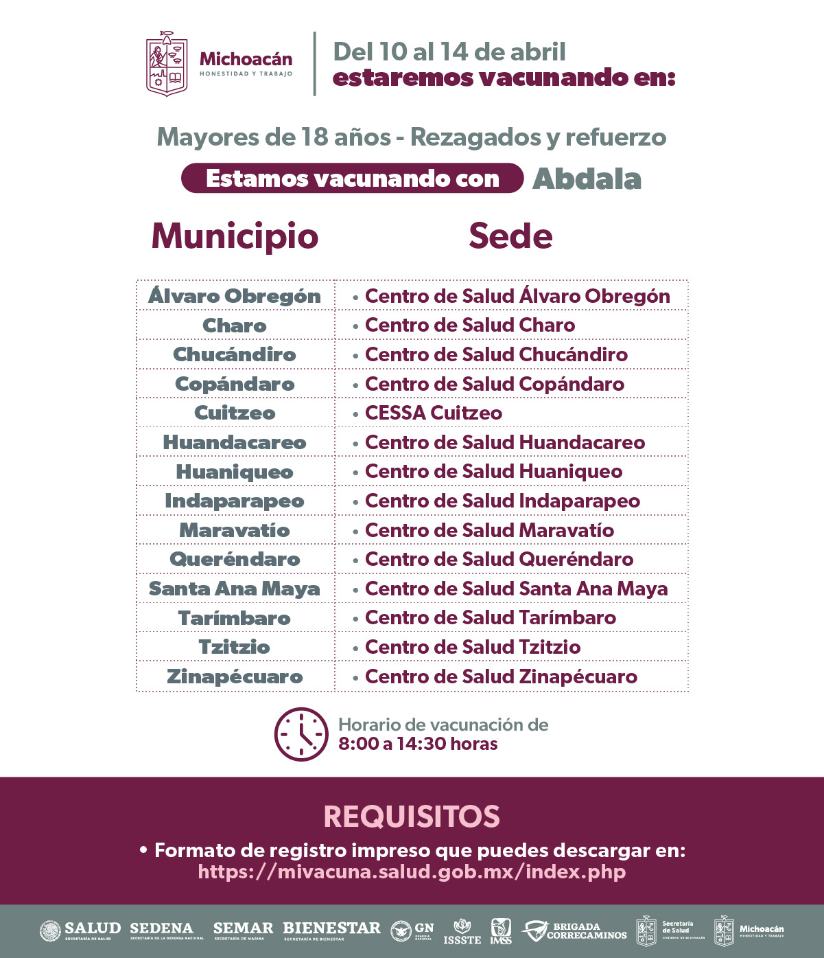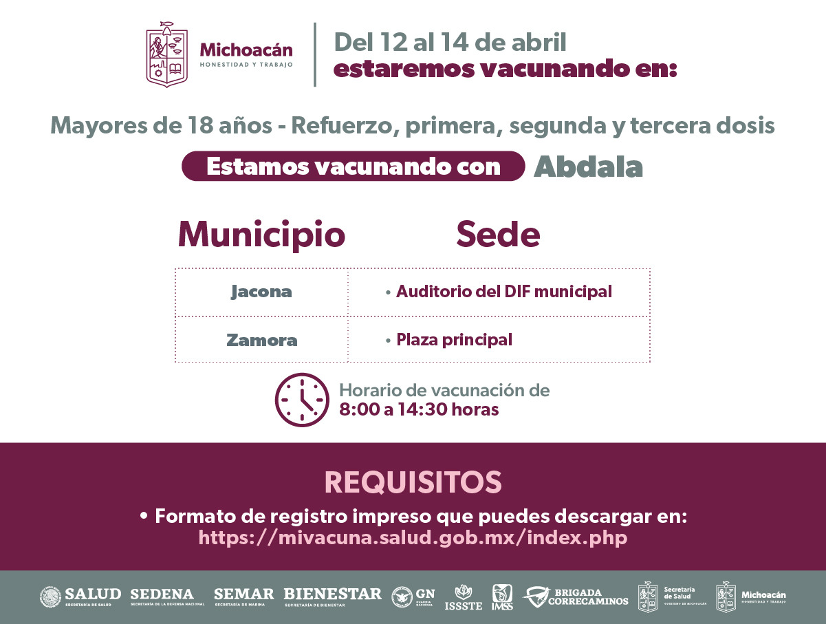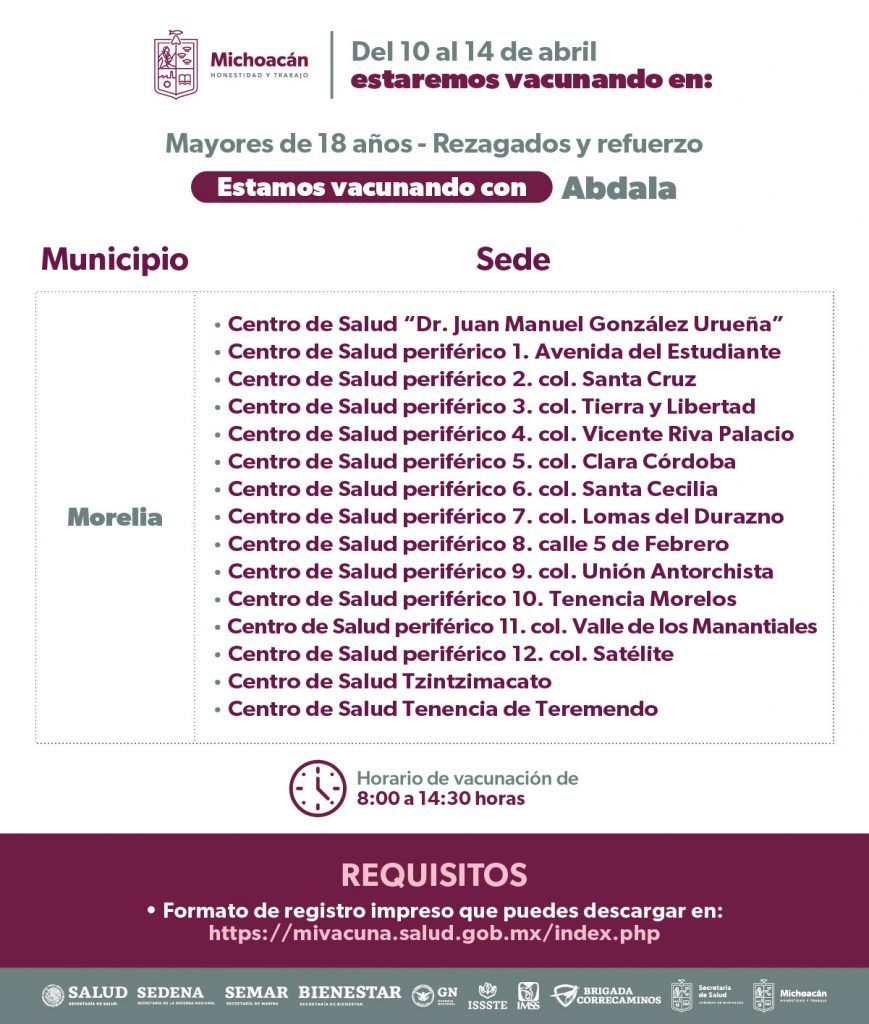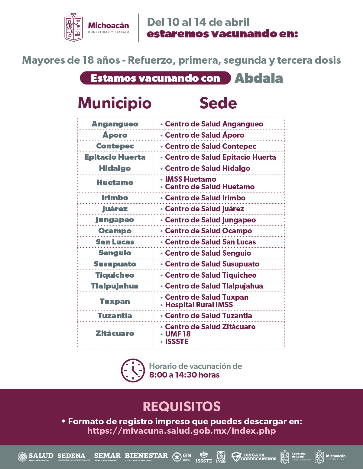 La vacunación es una medida crucial para combatir la propagación del COVID-19 en Michoacán y proteger la salud de la población. Por ello, la SSM hace un llamado a la ciudadanía a acudir a los centros de salud correspondientes y recibir la vacuna Abdala.