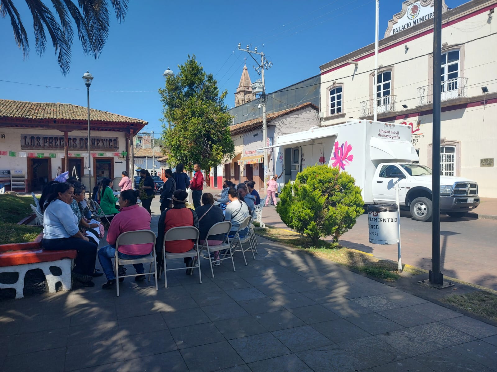 Morelia, Michoacán, 14 de noviembre del 2022.- Este lunes, 14 de noviembre, la Secretaría de Salud de Michoacán (SSM) desplegó una unidad móvil de mastografía en la plaza principal de Paracho.