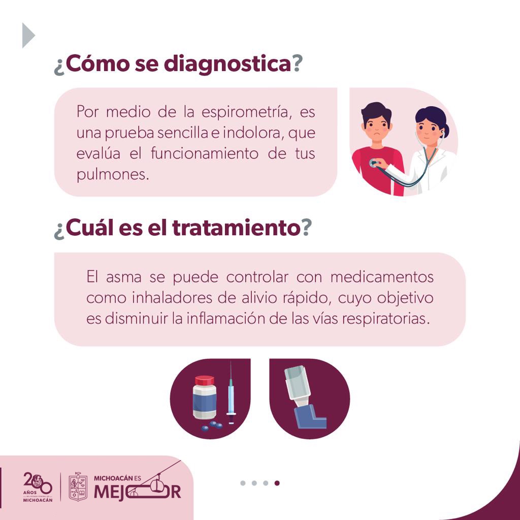 Y es que el asma con tratamiento médico es controlable, así como el esquema completo de vacunación invernal: influenza, neumococo y COVID-19.