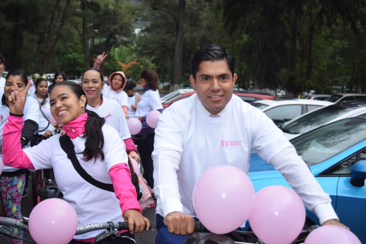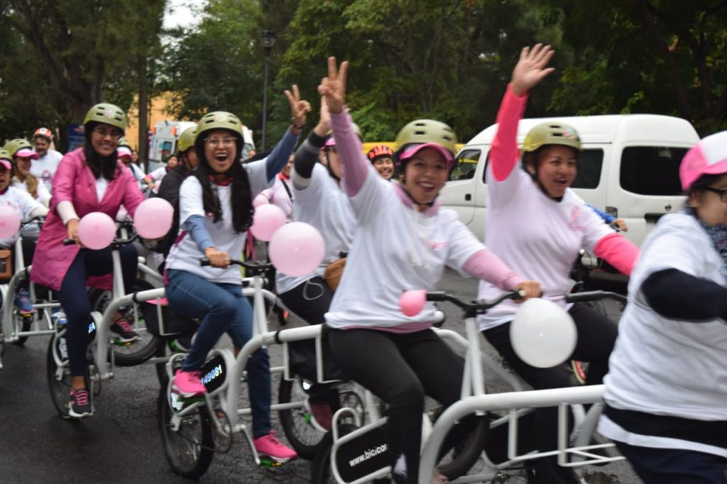 Morelia, Michoacán, a 17 de octubre de 2019.- Dentro de las actividades del mes de Lucha Contra el Cáncer de Mama, la Secretaría de Salud de Michoacán (SSM), realizó la Rodada Rosa en bicicleta.