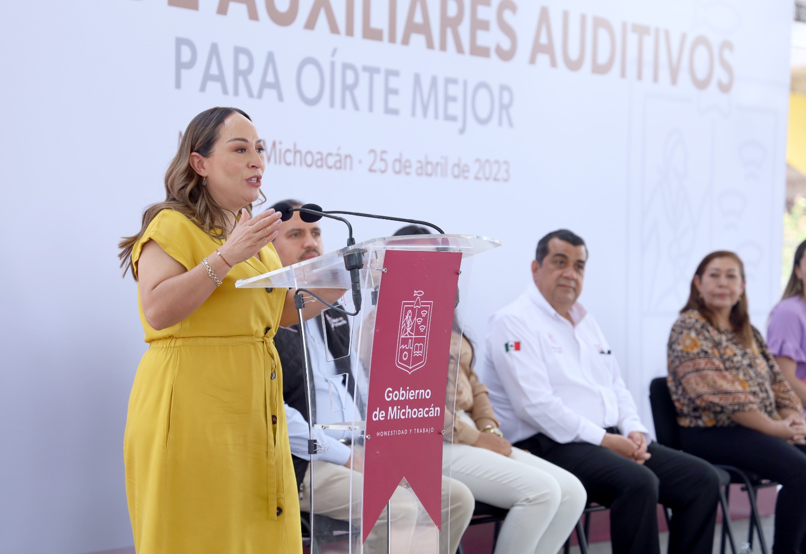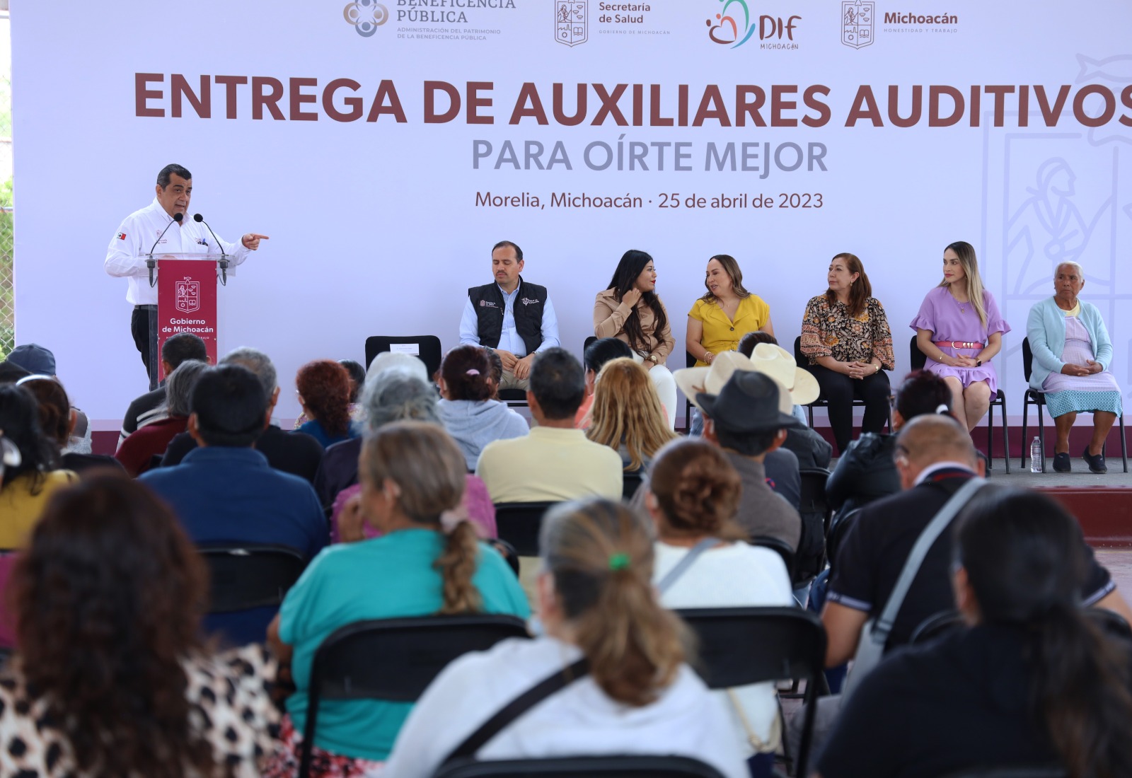 Durante la entrega de los primeros apoyos, la presidenta honoraria del Sistema DIF Michoacán, Grisel Tello Pimentel, destacó que los niñas, niños y adultos mayores fueron los grupos poblacionales más beneficiados con un aparato auditivo, además de que trabaja en coordinación con los ayuntamientos de la entidad, para canalizar a personas que podrían necesitarlo.