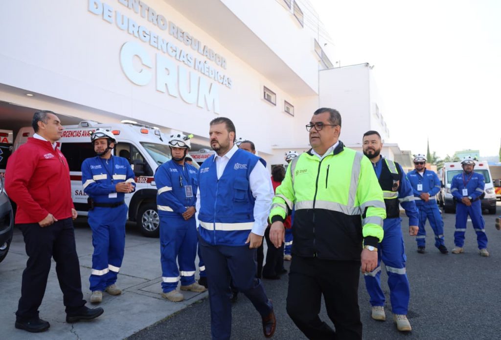 El secretario de Gobierno, Raúl Zepeda Villaseñor, y el secretario de Salud, Elías Ibarra Torres, dieron el banderazo de salida a cuatro ambulancias del Centro Regulador de Urgencias Médicas (CRUM), cinco unidades médicas móviles equipadas con instrumental, medicamento y material de curación y una unidad de logística.