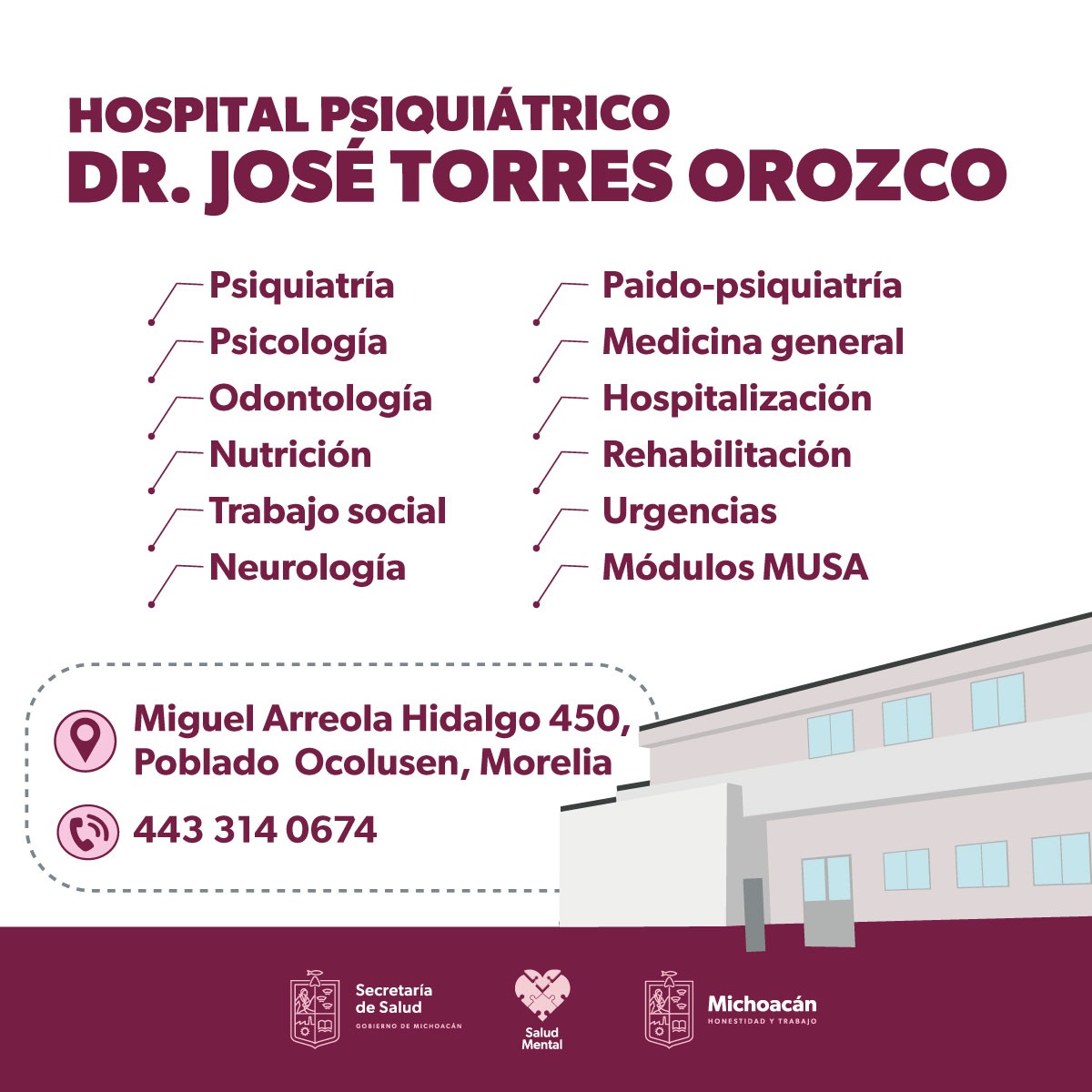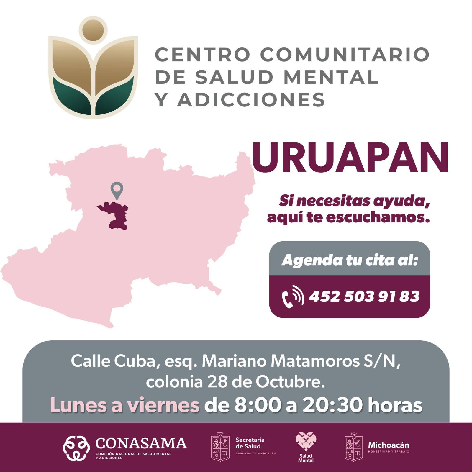 Además, la población puede solicitar atención oportuna en el Hospital Psiquiátrico de Morelia “Dr. José Torres Orozco”, donde se puede solicitar tratamiento, ante la próxima llegada del invierno.
