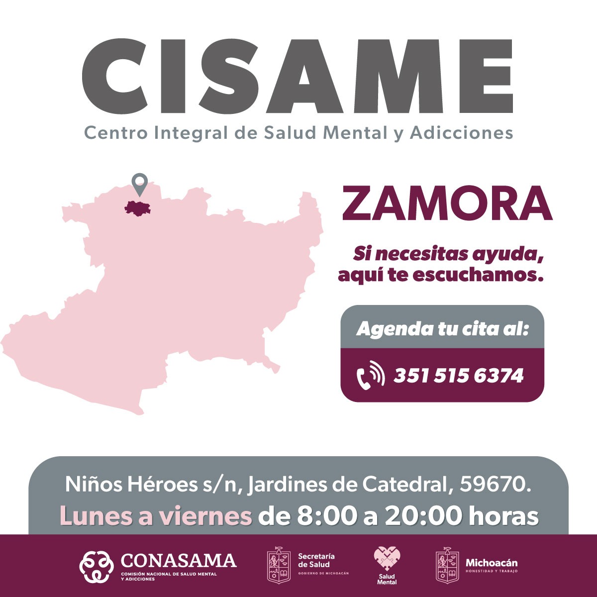La población interesada puede solicitar ayuda de los psicólogos del Centro Regulador de Urgencias Médicas (CRUM) al 911, o bien acudir al Cisame de Zamora con teléfono 351 515 6374.
