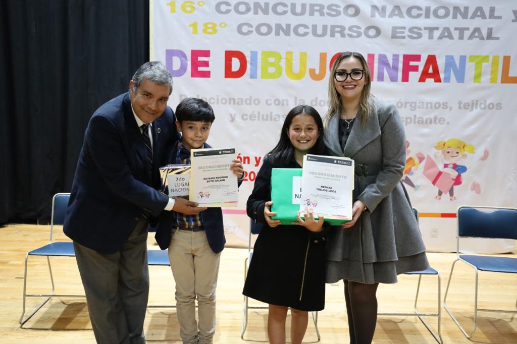 Los niños Octavio Rodrigo Soto Galván del Colegio Montessori Santa María y Mateo Zúñiga del Colegio Herbart fueron los ganadores del segundo y tercer lugar nacional, respectivamente, del concurso, el cual se realiza cada año para promover la cultura de órganos y tejidos y para difundir el valor e importancia a favor de la salud de todos los mexicanos.