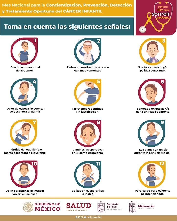 Morelia, Michoacán, 7 de mayo de 2023.- Las leucemias, linfomas y tumores del sistema nervioso o cabeza son los tres padecimientos de cáncer pediátrico más frecuentes, los cuales son diagnosticados y tratados de manera gratuita en el Hospital Infantil Eva Sámano de López Mateos.