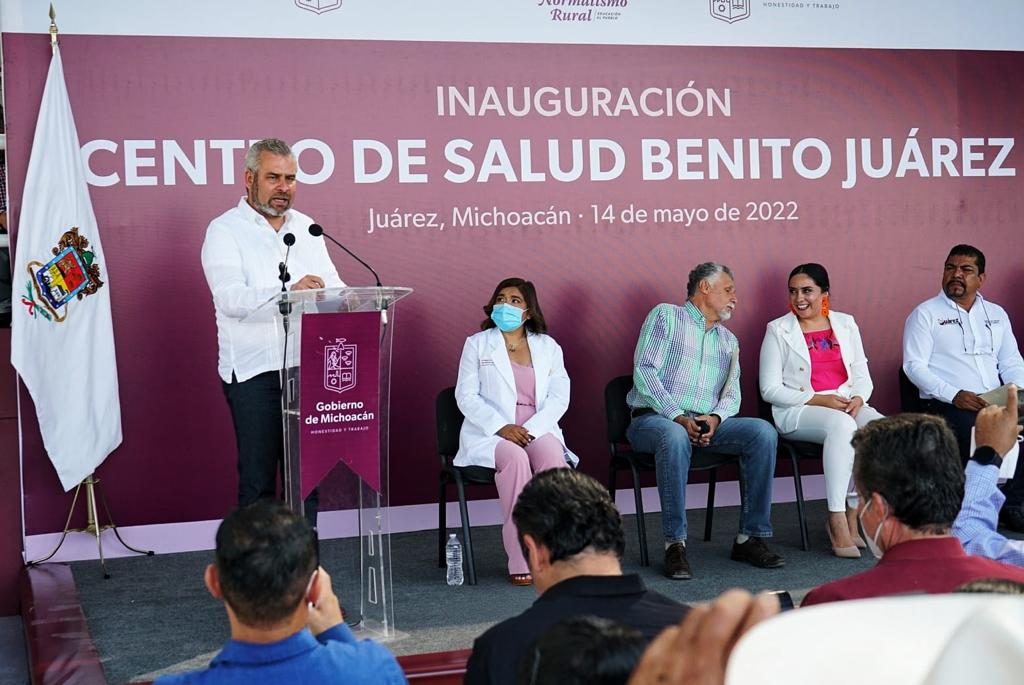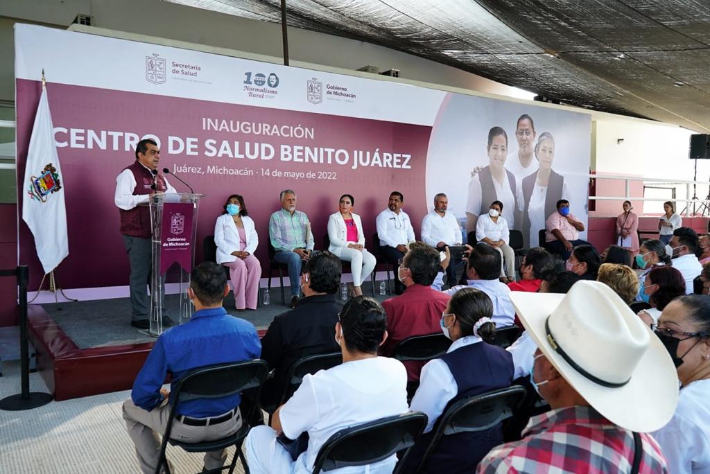 Benito Juárez, Michoacán, 14 de mayo del 2022.- El gobernador Alfredo Ramírez Bedolla, encabezó la inauguración del Centro de Salud Benito Juárez que tuvo una inversión de 15.6 millones de pesos y beneficiará a 14 mil 936 pobladores de 30 comunidades.