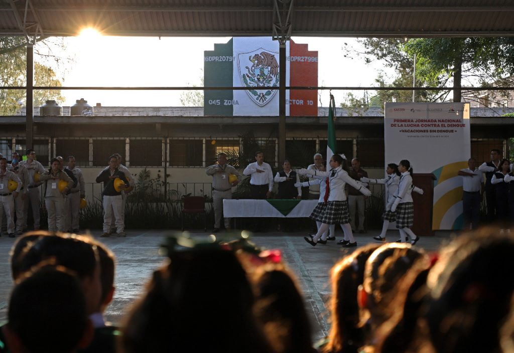• La Escuela Primaria “Hijos del Ejército”, fue el escenario para dar el banderazo de inicio a la estrategia “Vacaciones sin Dengue”, que promueve la Secretaría de Salud en Michoacán