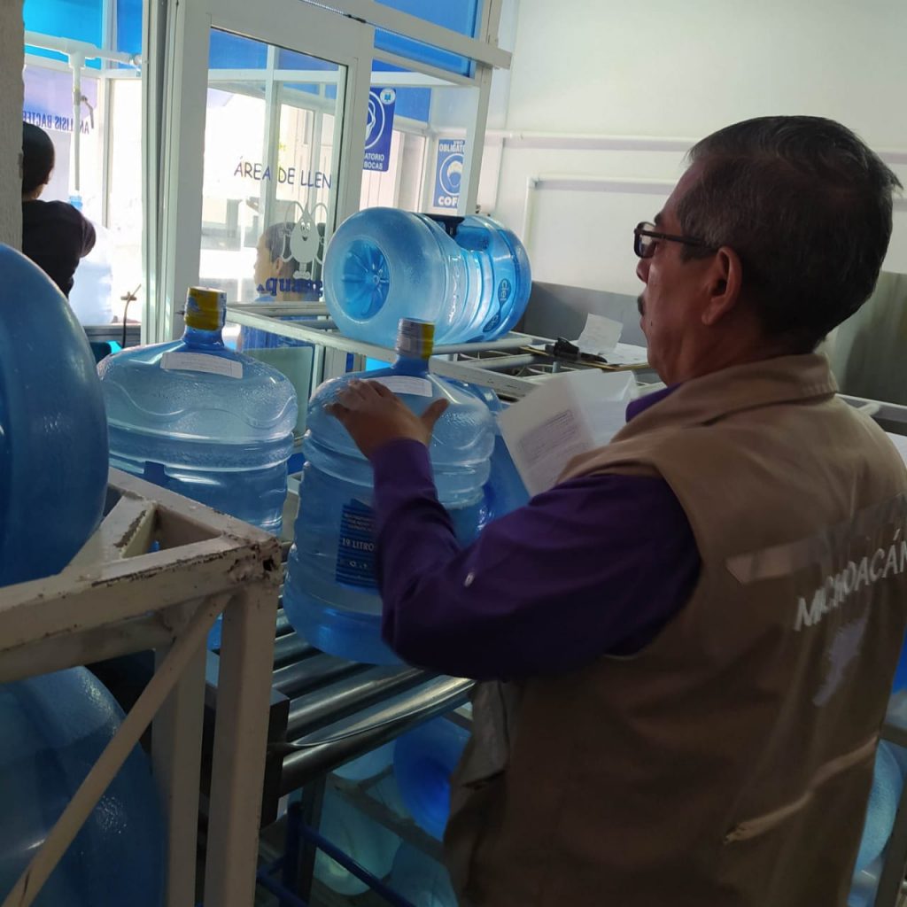 Morelia, Michoacán, 18 de abril de 2023.- La Secretaría de Salud de Michoacán (SSM), a través de la Comisión Estatal para la Protección contra Riesgos Sanitarios (Coepris), intensificó las acciones de vigilancia sanitaria en purificadores de agua y fábricas de hielo durante la temporada de calor.