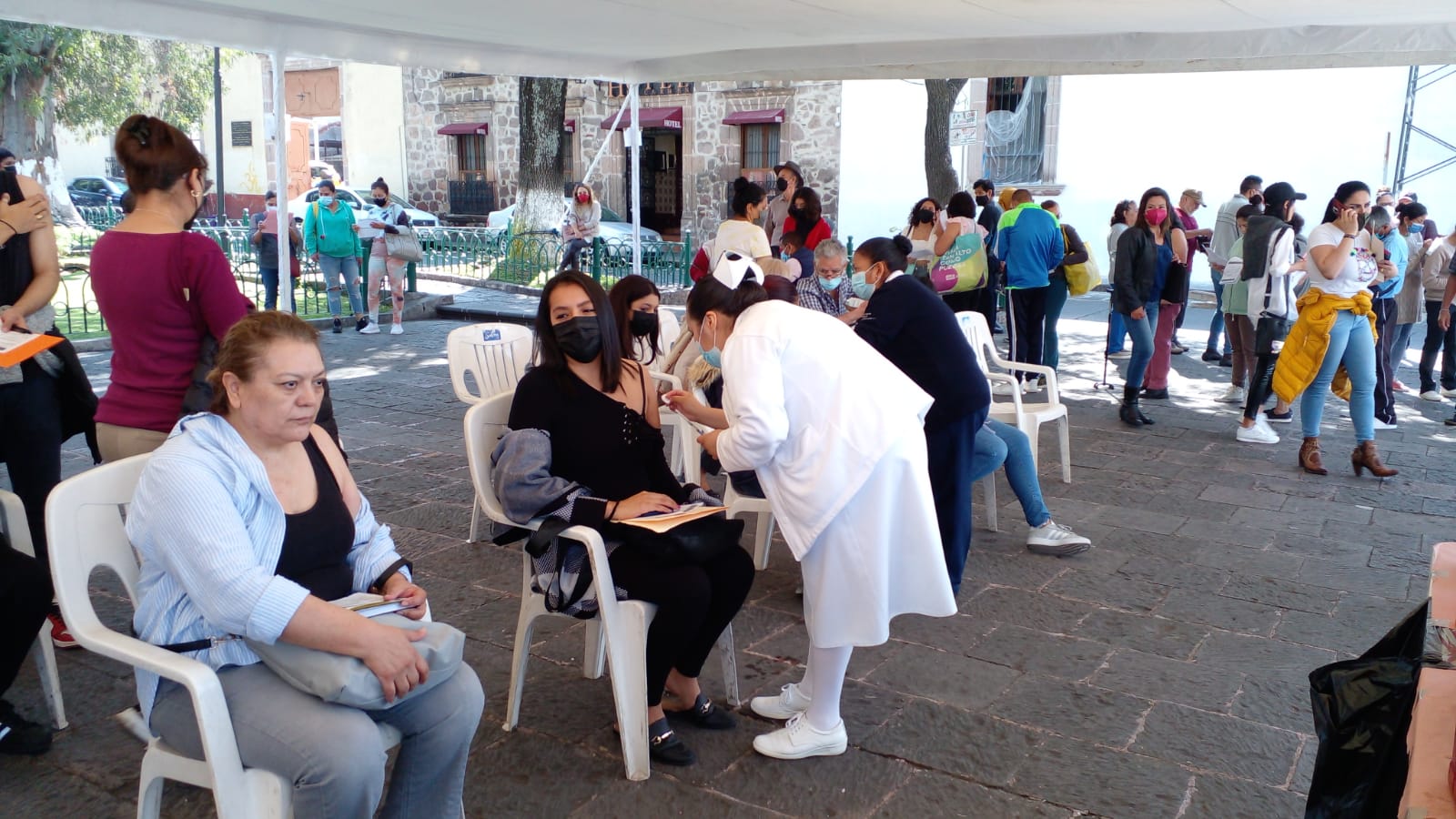 Morelia, Michoacán, 29 de noviembre del 2022.- La Secretaría de Salud de Michoacán (SSM) invita a la población a acudir las jornadas de vacunación anti COVID-19 e influenza estacional, así como a la aplicación de pruebas rápidas para detectar VIH, sífilis y hepatitis, en la Plaza del Carmen del Centro Histórico de Morelia.