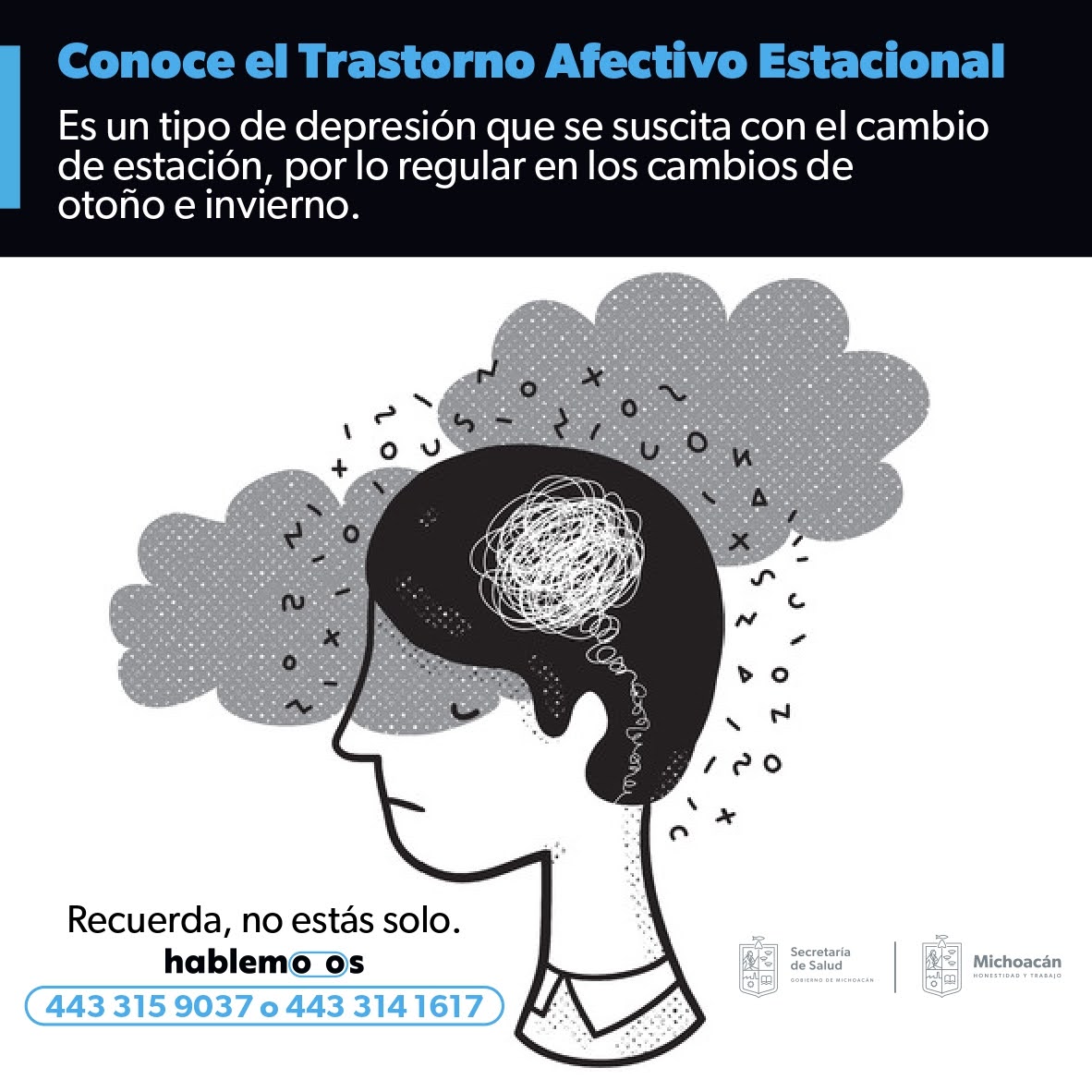 Si los sentimientos de tristeza o ansiedad persisten por más de dos semanas e interfieren con la vida diaria, es crucial buscar ayuda profesional, para ello, la SSM pone a disposición de la población la línea Hablemoos en los teléfonos 443 314 1617 y 443 315 9037, donde se brinda orientación, contención y atención oportuna las 24 horas, los 365 días del año.
