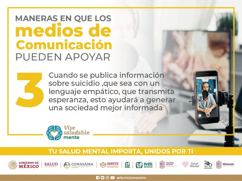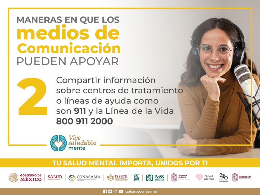 Este curso dirigido a periodistas y jefes de información, solicitó el apoyo a los medios para promover la prevención, con historias de superación y estrategias de afrontamiento para evitar el suicidio, e incluir historias de personas que superaron pensamientos suicidas con ayuda profesional y comunitaria.