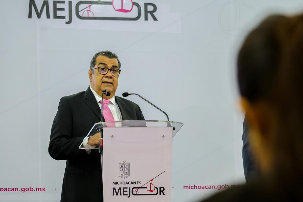 Morelia, Michoacán, 6 de octubre de 2025.- En rueda de prensa, encabezada por el gobernador Alfredo Ramírez Bedolla, el titular de la Secretaría de Salud de Michoacán (SSM), Elías Ibarra Torres, detalló la infraestructura disponible y las acciones implementadas en el marco del Mes de Sensibilización contra el Cáncer de Mama.