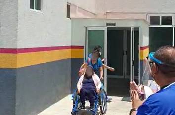 Entre aplausos del personal que le brindó atenciones y cuidados especializados, durante los nueve días que permaneció en el área asignada para este tipo de pacientes, la mujer abandonó la unidad médica.
