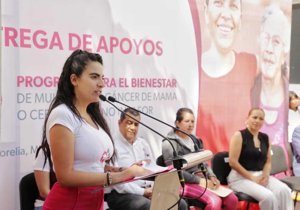 La secretaria del Bienestar, Giulianna Bugarini Torres, resaltó la labor del gobernador Alfredo Ramírez Bedolla al encabezar un gobierno de realidades, que no se queda nada más en arranques de programas. Destacó que el apoyo mensual de 4 mil pesos que reciben de manera directa y sin intermediarios, hasta concluir su tratamiento oncológico, es ya un derecho constitucional.