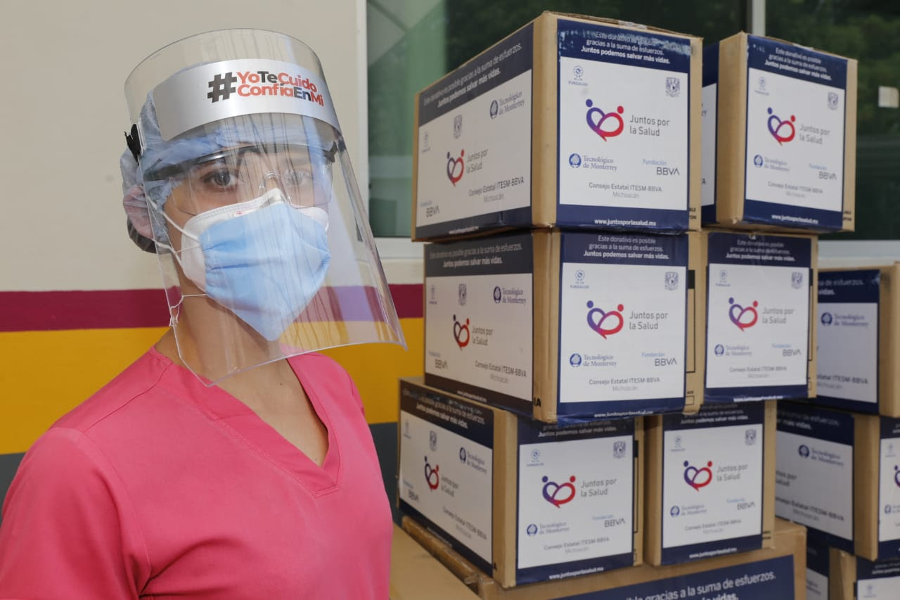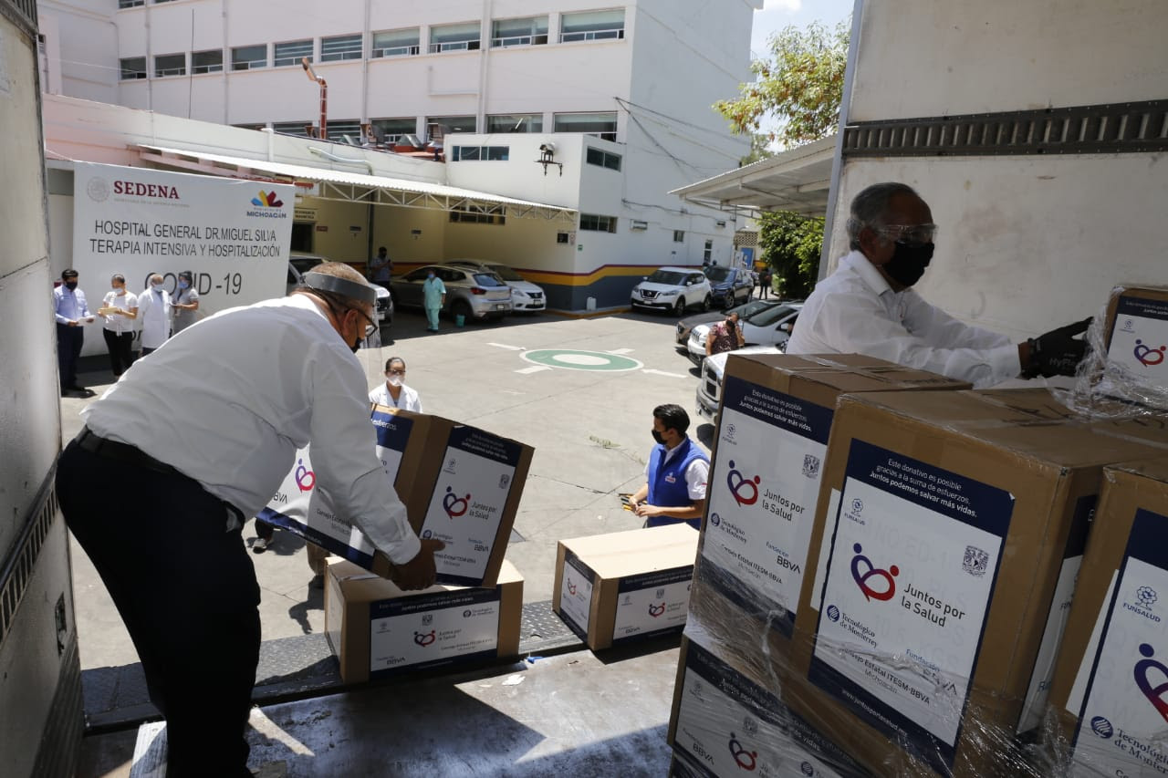 Morelia, Michoacán, a 22 de mayo de 2020.- Como una muestra de solidaridad en medio de la contingencia por el COVID-19, la iniciativa Juntos por la Salud donó al Hospital General «Dr. Miguel Silva» equipo de protección para el personal médico, de enfermería y de hospitalización.