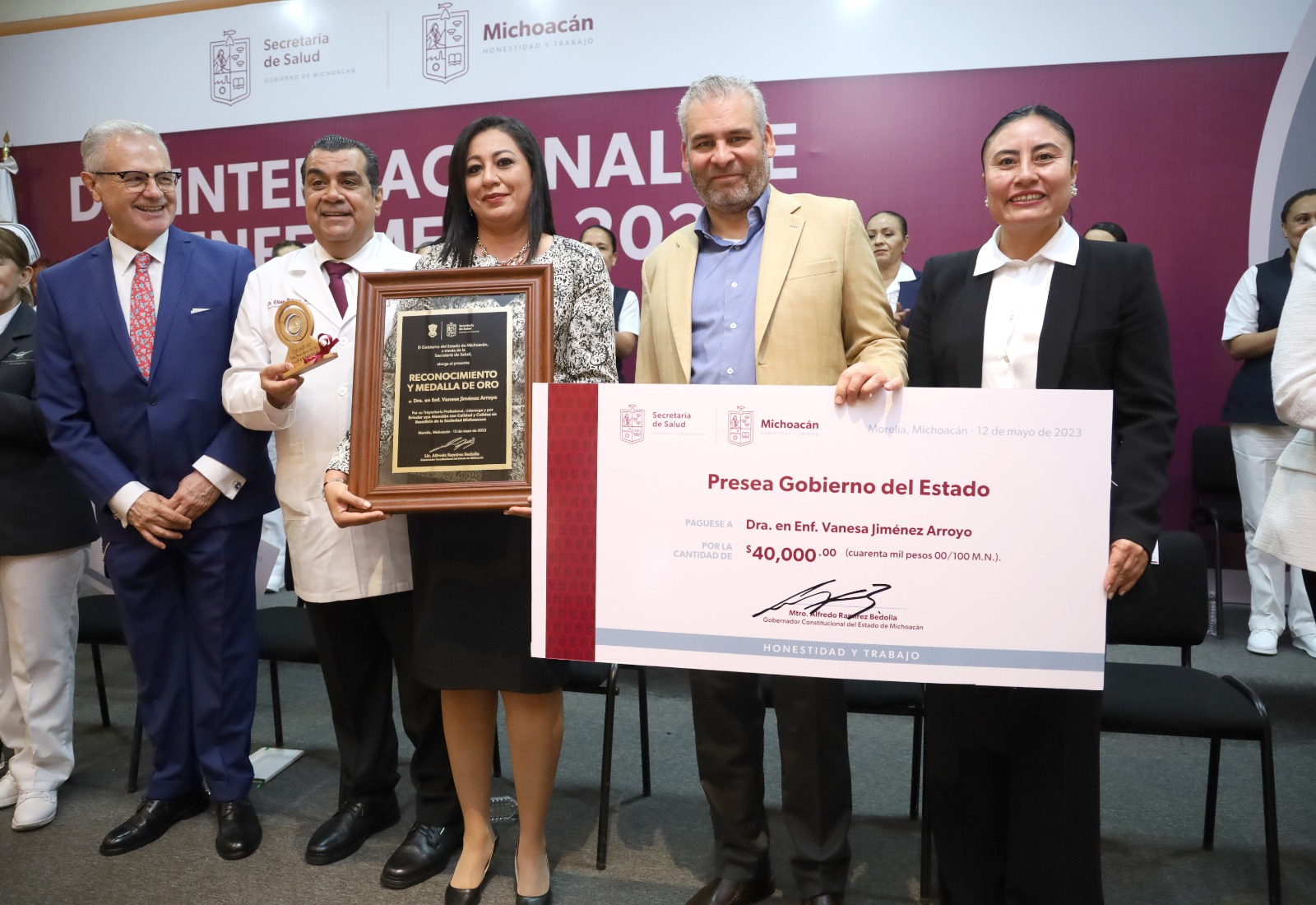 Vanesa Jiménez Arroyo, galardona, agradeció al gobernador el compromiso que ha mostrado con el sector desde su llegada, en especial con la enfermería, al reconocer la labor que realizan todos los días.