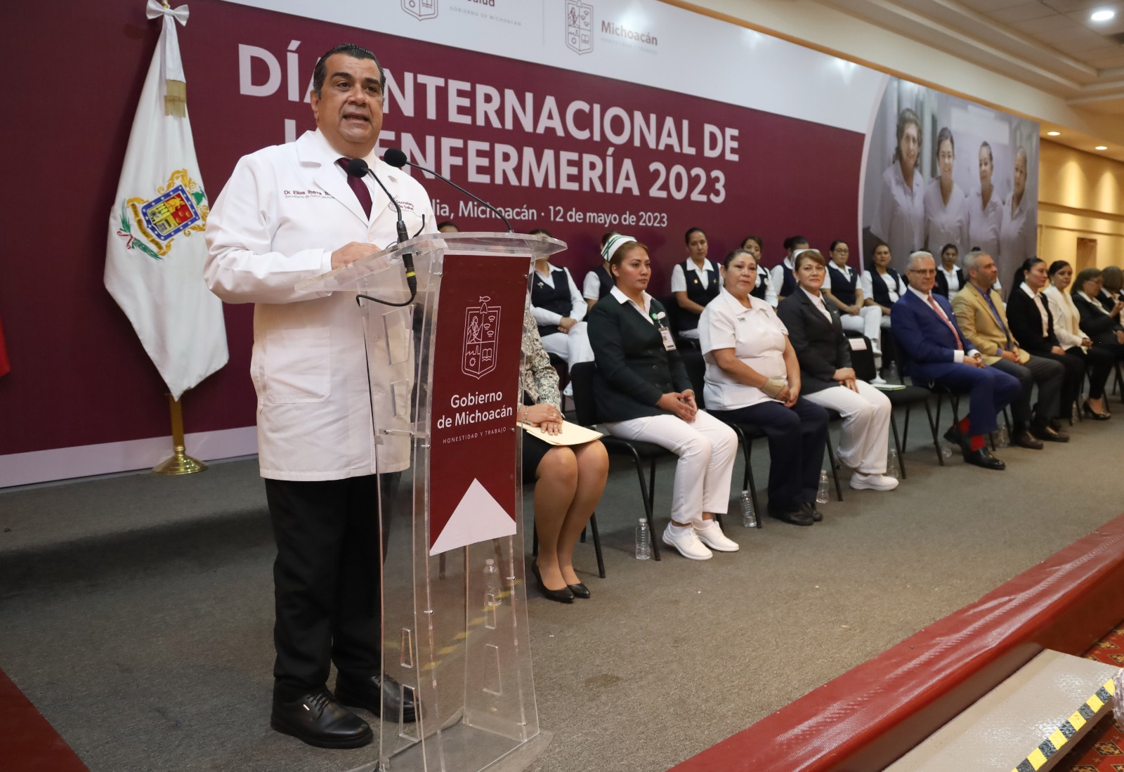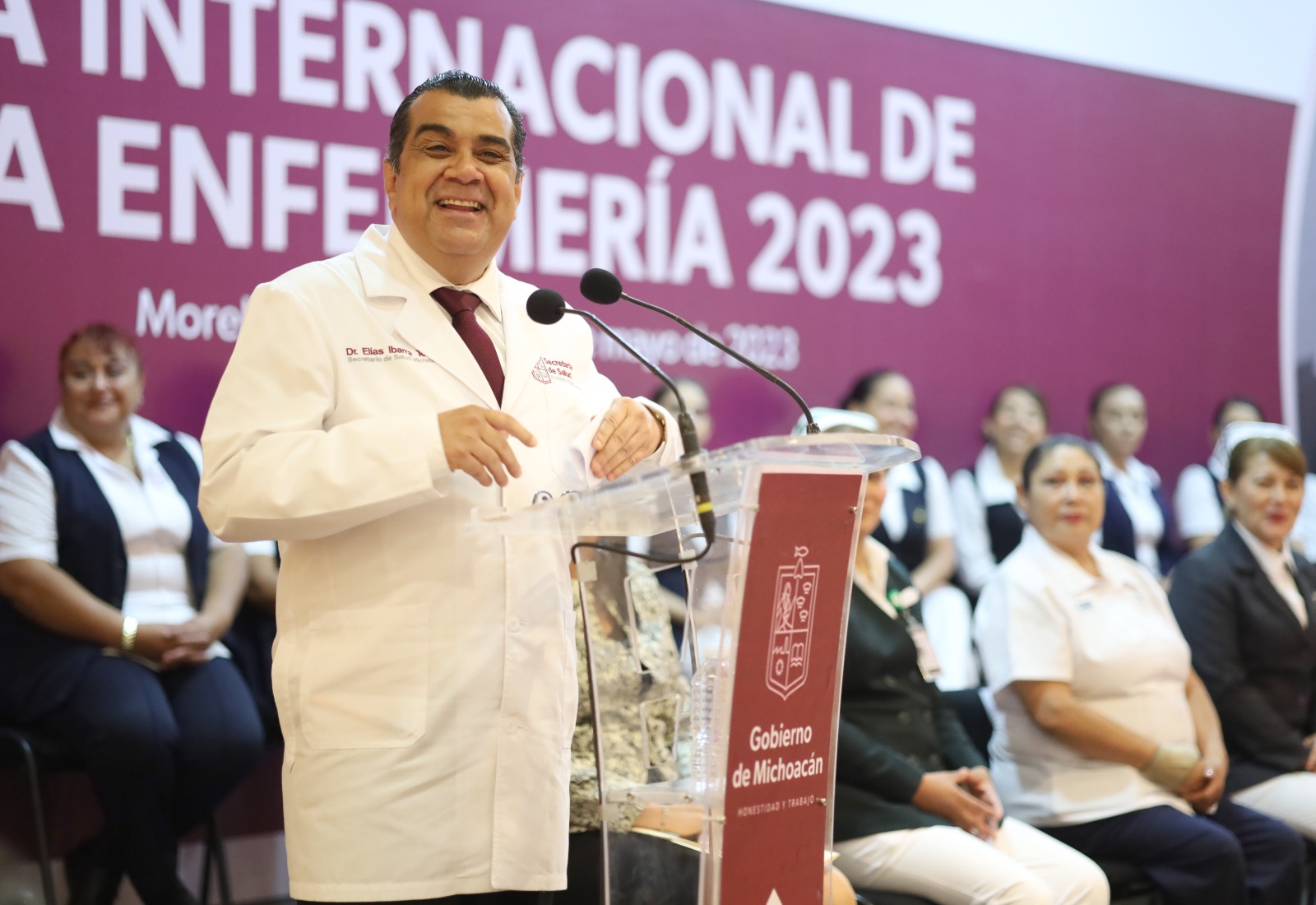 Elías Ibarra Torres, secretario de Salud en el Estado, mencionó que el trabajo de las enfermeras consiste en brindar atención y apoyo a los pacientes para garantizar la seguridad y el bienestar de las y los michoacanos.