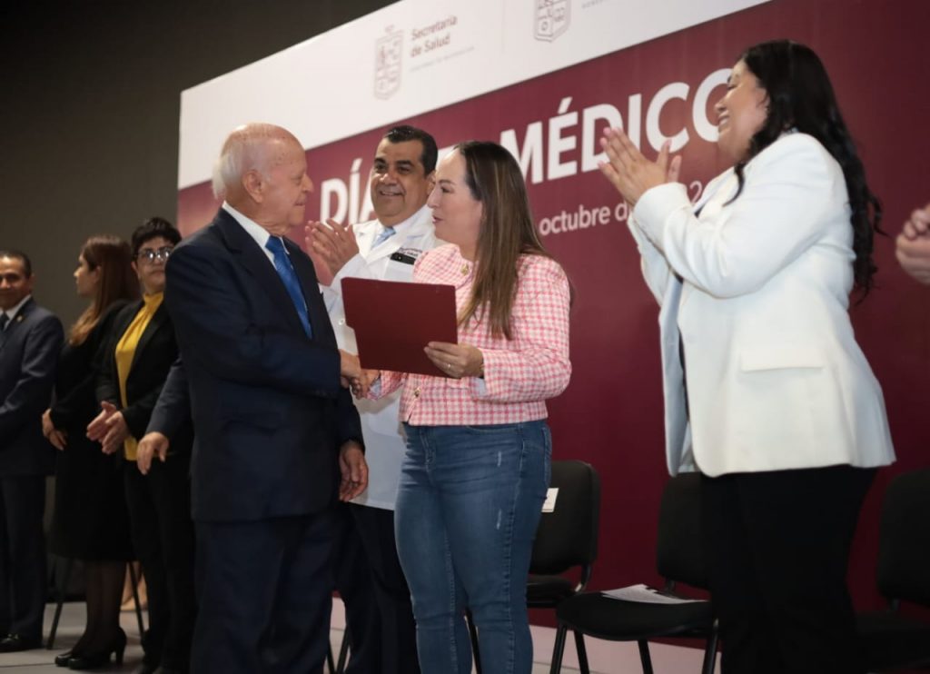 Durante un evento conmemorativo encabezado por la presidenta Honoraria del Sistema para el Desarrollo Integral de la Familia (DIF) Estatal, Grisel Tello Pimentel, y el titular de la SSM, Elías Ibarra Torres, se reconoció la trayectoria laboral, social y el desempeño de las y los médicos que brindan servicio con calidad y calidez en las diferentes unidades médicas de la SSM, IMSS e ISSSTE en la entidad.
