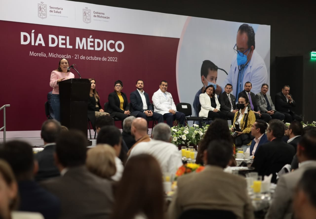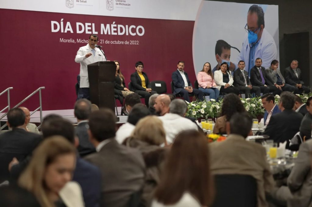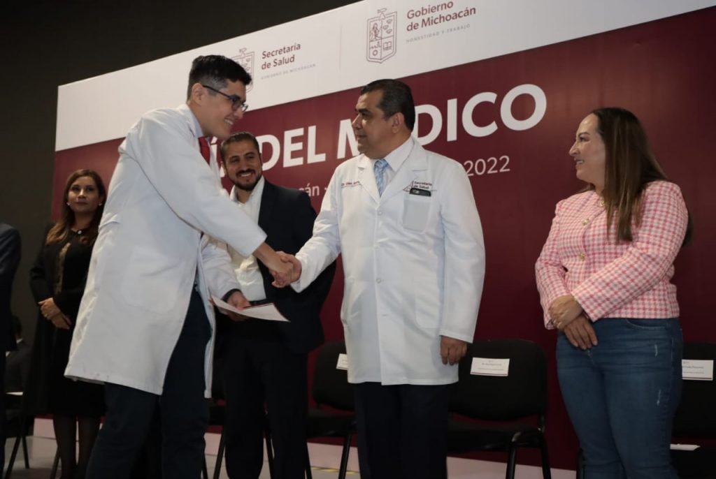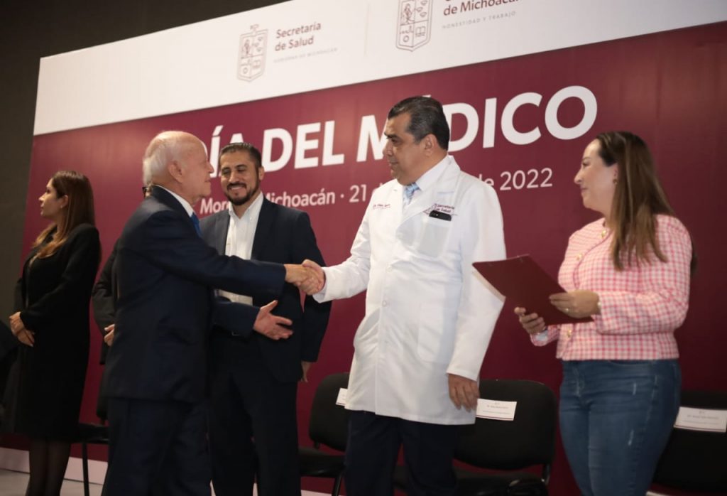 Morelia, Michoacán, 21 de octubre del 2022.- En el marco del Día del Médico a celebrarse el 23 de octubre, el Gobierno del Estado, a través de la Secretaría de Salud de Michoacán (SSM), reconoció el esfuerzo, compromiso y dedicación de hombres y mujeres que velan por la salud y bienestar de la población michoacana.